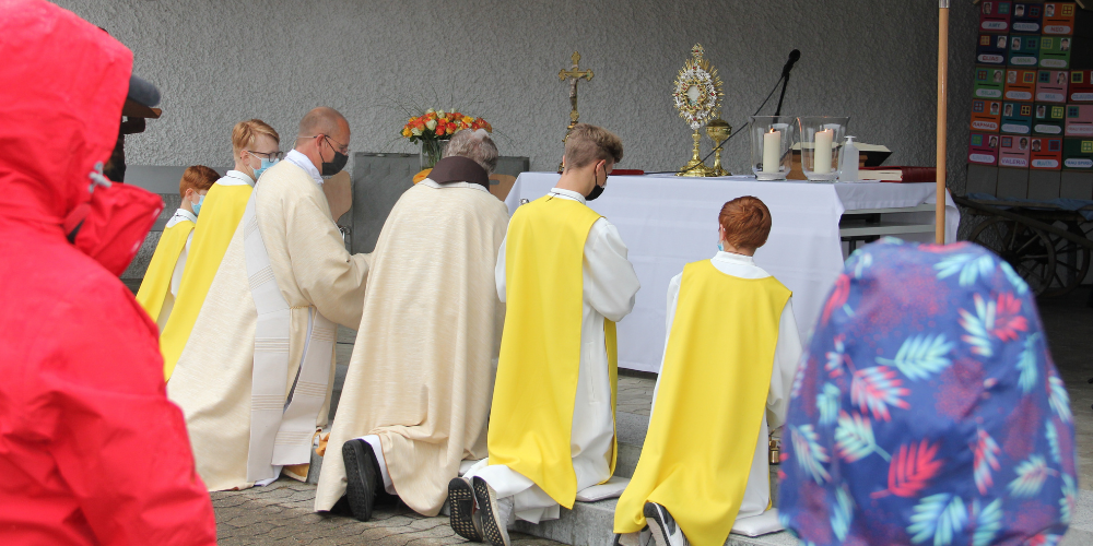 Nach dem Gottesdienst bot die Jungwacht Bratwürste und Cervelats vom Grill zum Verkauf an. Leider fiel die von ihnen aufgestellte Festwirtschaft buchstäblich ins Wasser. Trotzdem fanden die Würste bei den Gottesdienstbesuchern regen Absatz. Es war schön und eindrücklich wieder einmal mit vielen Gläubigen zusammen einen Gottesdienst zu feiern.