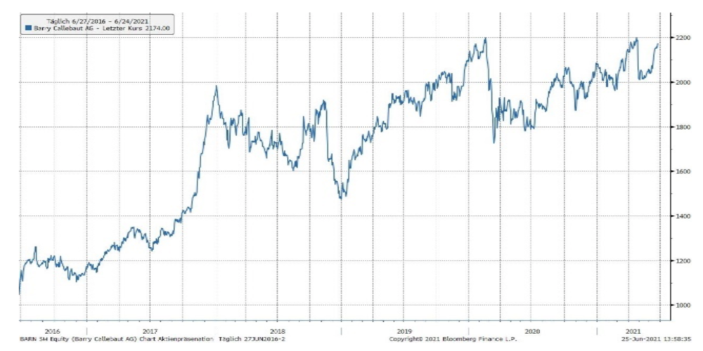 Barry Callebaut hat gerade während der Pandemie ihre Krisenfestigkeit bewiesen und mit einer guten Verteidigung der Profitabilität überzeugt. Barry Callebaut hat kürzlich den belgischen Schokoladenkonzern Europe Chocolate Company übernommen. Der Konzern beschreitet weiter den Weg von kleineren, feinen Ergänzungsakquisitionen. Ein (Zu-)Kauf erscheint uns auf dem aktuellen Niveau interessant.»