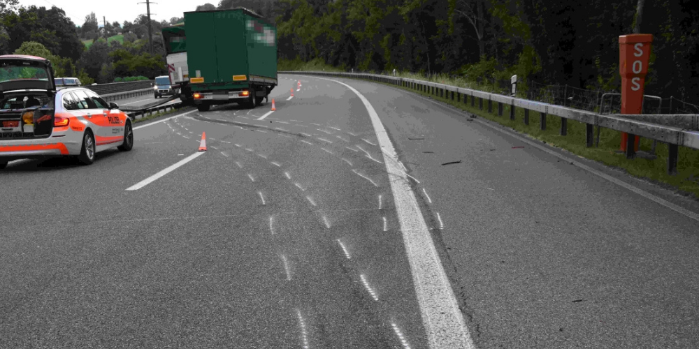 Am Montagabend ist es auf der Autobahn A1 zu einer Streifkollision gekommen. Ein Lastwagen mit Sachentransportanhänger streifte ein auf dem Pannenstreifen stehendes Auto.