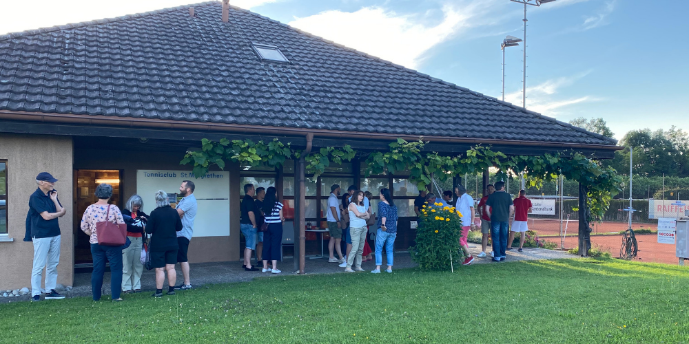 39 Mitglieder des TC St.Margrethen trafen sich am frühen Abend im Bruggerhorn zur Hauptversammlung. Während dem Apéro konnte die fussballbegeisterte Fraktion noch die 1. Halbzeit des EM-Viertelfinales zwischen der Schweiz und Spanien mitverfolgen.