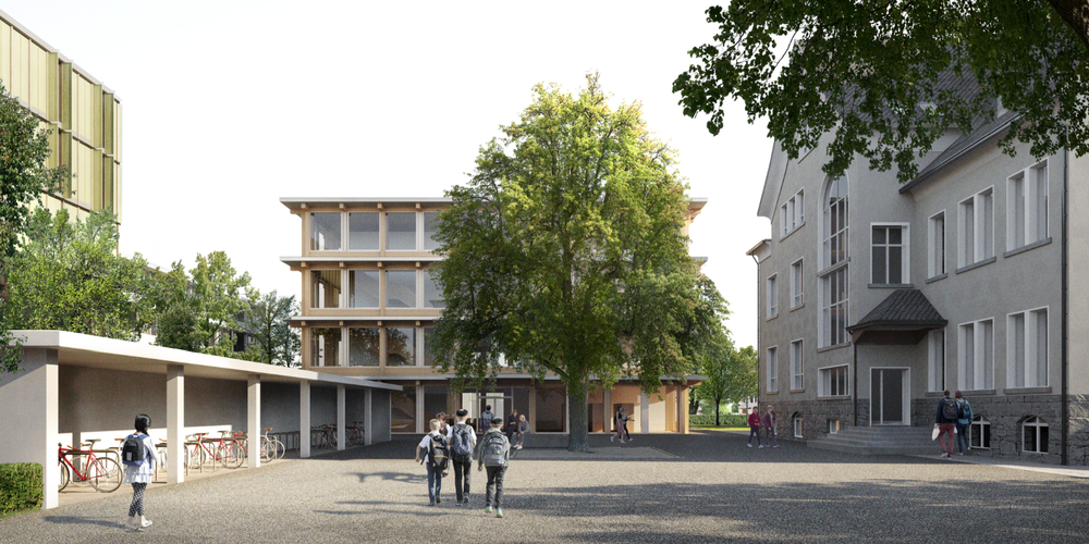 - ein Schulhaus-Neubau zur Erweiterung des Primarschulhauses Mitteldorf mit Schülerhort und ein zusätzliches Wohn- und Geschäftsgebäude