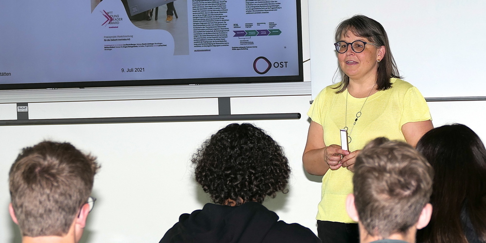 Anschliessend wurde die Gesamtheit der Schülerschar aus den zweiten Klassen in vier Gruppen aufgeteilt. Je nach Interesse konnten sie sich sich bei fünf verschiedenen Referenten über die Möglichkeiten ihrer beruflichen Zukunft informieren. Wie etwa bei Rosella Toscano, Dozentin an der Ostschweizer Fachhochschule in den Gebieten Strategisches Marketing, Verkaufs- und Vertriebsmanagement, Key Account Management und International Sales Management. Anhand fesselnder Beispiele beschrieb sie die projektorientierte Arbeit an der OST-Ostschweizer Fachhochschule.
