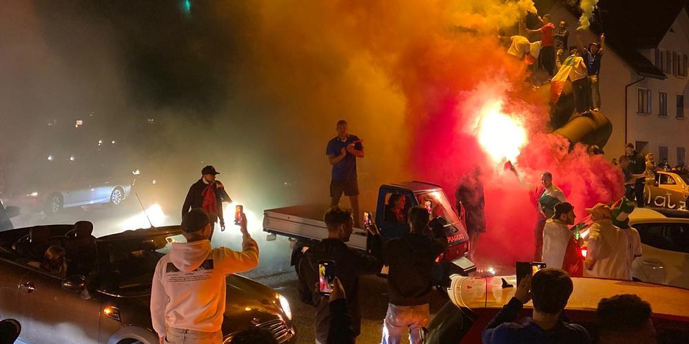 Vom «BLICK» zum hässlichsten Kreisel der Schweiz gewählt, erlebte das «Kunstwerk» in der Au während der gestern zu Ende gegangenen Europameisterschaft ungeahnte Anziehungskraft. Nachdem dort bis zum Viertelfinale primär die Schweizer Siege gefeiert wurden, waren gestern die siegreichen Italiener an der Reihe. Die «Rheintal-Italiener» feierten den ersten Europameister-Titel in ihrer Geschichte enthusiastisch mit ordentlich Pyro-Material.
