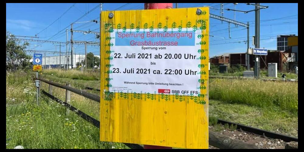 Der Bahnübergang im Industriequartier an der Grasbäustrasse wird von vielen Fussgängern und Velofahrern als Abkürzung Richtung Rheinpark und Bruggerhorn genutzt. Dieser bleibt wegen Sanierungsarbeiten vom 22. Juli, 20.00 Uhr bis 23. Juli, cirka 22.00 Uhr gesperrt.