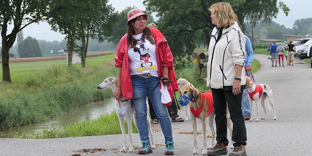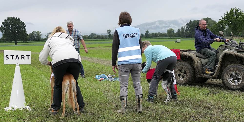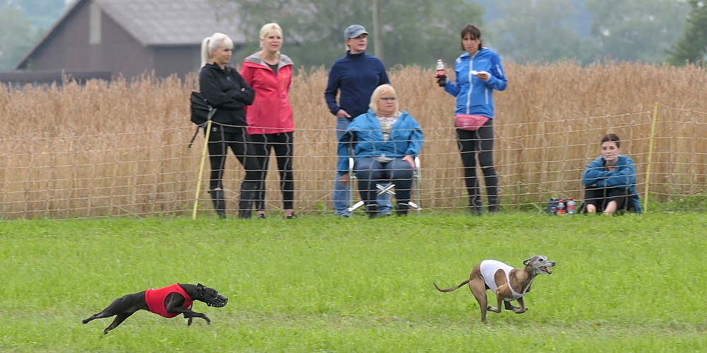 Unter den flotten Vierbeinern befinden sich denn auch «alte Rennhasen», also Hunde mit offensichtlich viel Erfahrung im «Coursing». Hunde, die nicht blind dem Hasen hinterherhecheln, schon vorausschauend die Ecken des Kurses abkürzen, um den Hasen zu stellen. Darunter auch echte «Schlawiner», die es dann allerdings übertrieben haben. Sie haben derart abgekürzt, dass sie den Fetzenhasen aus den Augen verloren haben und auf dem ganzen Feld auf die Suche gehen mussten.