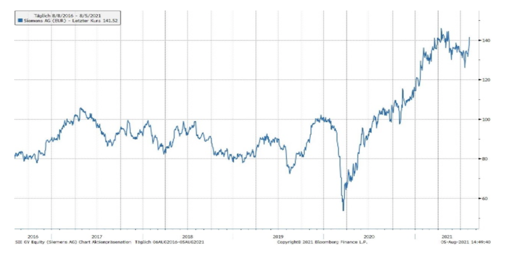 «Siemens AG ist ein Mischkonzern mit den Schwerpunkten Automatisierung und Digitalisierung in der Industrie, Gebäudeinfrastruktur, dezentrale Energiesysteme, Mobilitätslösungen für den Schienen- und Strassenverkehr und zählt zu den weltweit führenden Anbietern von Elektro- und Elektronikgeräten. Innerhalb der letzten drei Jahre hat der Konzern die Medizintechniktochter Healthineers und das Energiegeschäft abgespalten. Nun liegt die volle Konzentration auf den Kerngeschäften Software, Automatisierung und digitale Infrastruktur.