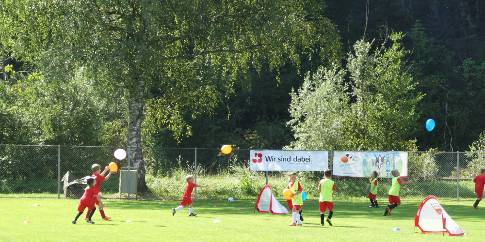 Es wird geschwitzt, gefightet und vor allem gelacht. Das rhy.cloud-Juniorencamp in Montlingen (09. bis 13. August) hat die perfekte Woche für sich reserviert. Die Sonne scheint, das Grün ist gewässert. Nachdem die Sommerferien mehrheitlich von schlechtem Wetter geprägt waren, könnten die Organisatoren über den Status Quo kaum glücklicher sein. 87 Kinder in verschiedenen Gruppen rund um die Trainingsplätze trotzten den mittlwerweile heissen Temperaturen und trainieren mit vollem Engagement.