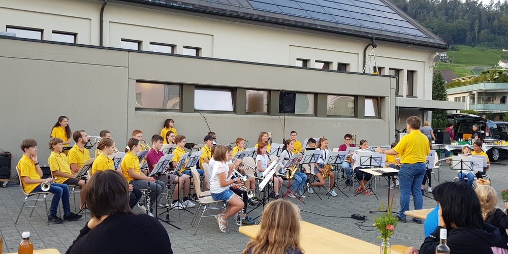 Nach einer kurzen Umbaupause übernahmen die Musiker vom MVB und präsentierten dem zahlreichen Publikum Stücke wie z.B. Smoke on the Water, Arosa, Longstreet Dixie, Alperose u.a. Mit einbrechender Dunkelheit und nach einer Zugabe packten die Musikanten ihre Sachen zusammen und liessen gemeinsam mit den Zuschauern den Abend gemütlich ausklingen.