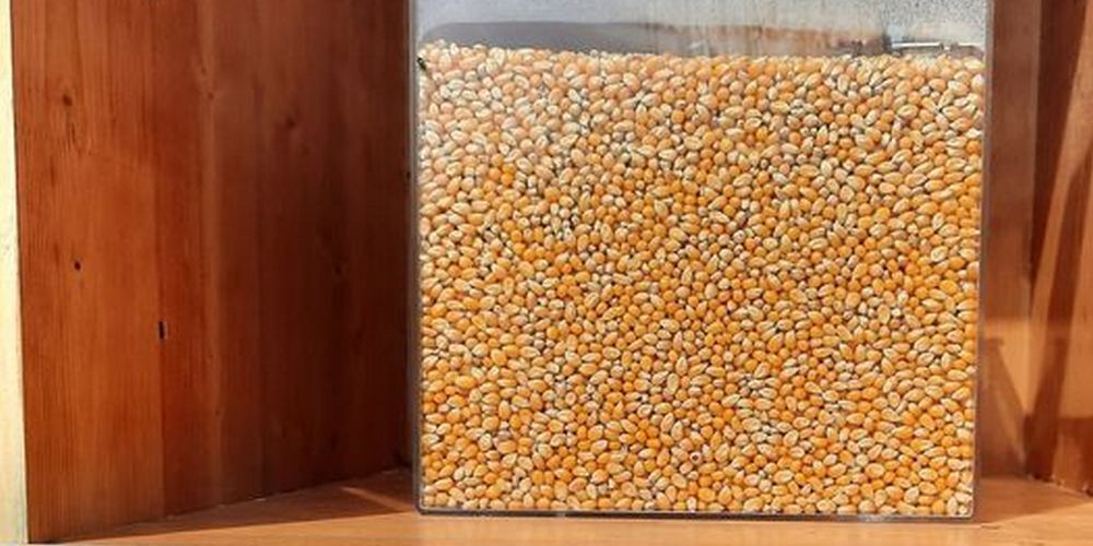 Beim RhyLa-Wettbewerb wurde gefragt, wie viele Maiskörner sich in der unten abgebildeten Box befinden. Auf die richtige Antwort - in der Box waren 60'000 Maiskörner - tippten insgesamt 11 Gäste.