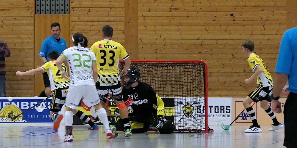 Bombenstimmung in der Aegetenhalle. Obwohl die Gators und die Luchse ihre Heimspiele am frühen Samstagabend parallel angesetzt hatten, fanden über 200 Zuschauer den Weg zu den Rheinkrokos, die im Sechzehntel-Cup das NLA-Team aus Waldkirch-St.Gallen zu Gast hatte.