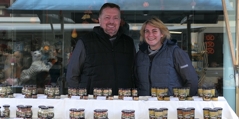 So auch auf dem Rheinecker Martini-Markt, wo Karin Raymann und Klaus Thams neben selbst gemischten Gewürzen auch vollkommen neue Senfmischungen präsentierten. Und dem Label «Hoss» gab es da zum Beispiel einen Ananas-Curry-Senf, Brombeer-Thymian oder Himbeere-Rosmarin zu kaufen. Die beiden Gewürzmischer haben erst im Frühjahr mit ihrer Produktion begonnen. Doch zuvor stand das Pröbeln mit den Rezepten. «Da gab es auch einige Missgeschicke.» Aber jetzt mundet alles köstlich.