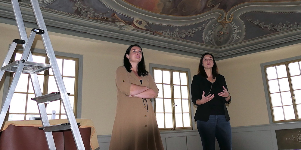 Das zweite Obergeschoss und das Dachgeschoss wurden zu grossen und einladenden Ausstellungsräumen umgebaut, wogegen der repräsentative mit aufwändigen Deckengemälden ausgestattete Göttersaal im Südflügel in seiner prächtigen Ausstrahlung erhalten ist und künftig auch als Trauzimmer der Stadt Altstätten genutzt wird.