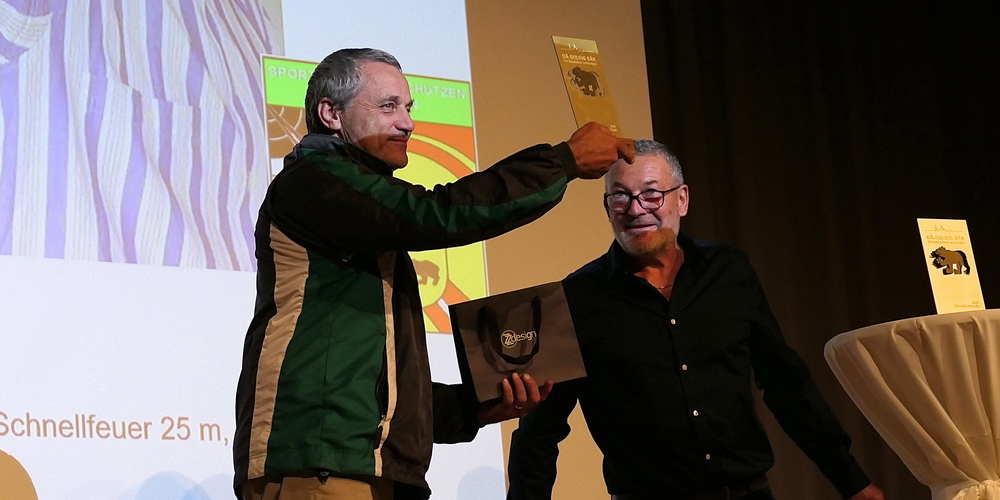 Weiters durften Jenny Mosch und Andreas Mosch von den Schwarzpulverschützen für ihre Siege und Medaillenränge bei den Modellkanonen und im Vorderladerschiessen je einen goldigä Bär in Empfang nehmen. Dazu kamen noch der seit vielen Jahren bei den Pistolenschützen aktive und mit dem Schweizer Meistertitel sowie zusätzlichen drei Bronzemedaillen sehr erfolgreiche Hansruedi Götti.