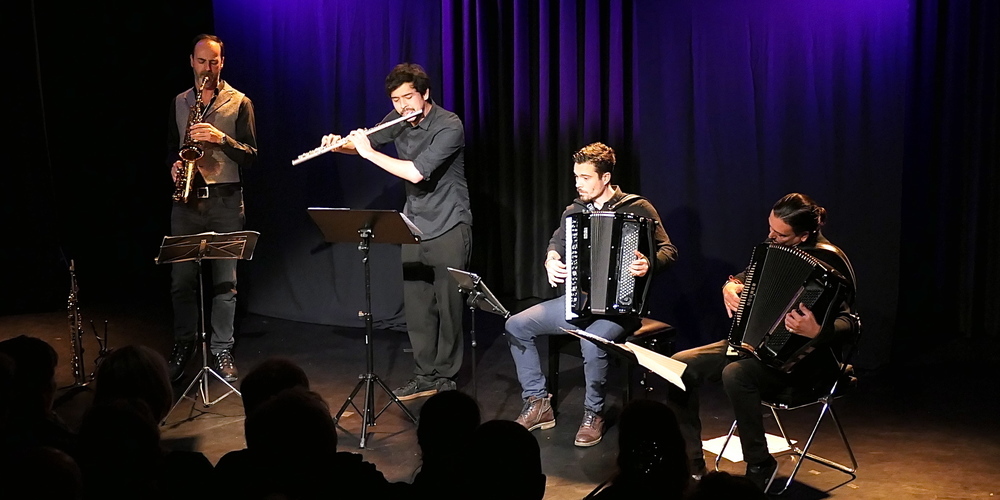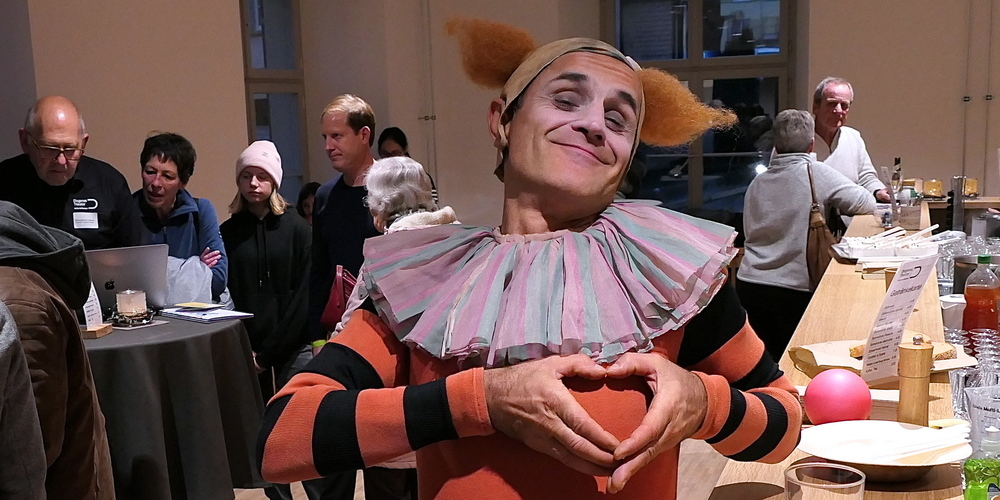 Im wunderbaren neuen Theatersaal gab es den ganzen Tag ein abwechslungsreiches Geschehen. Eigentlich einen Streifzug durch die vielfältigen Auftritte, die man im Diogenestheater von grossartigen Künstlern sehen kann. Den Auftakt an diesem Nachmittag machte das Trio Anderscht, gefolgt vom Goran Kovacevic Collective. Ein besonderes Highlight war das Rigolo Tanztheater, dessen Künstler ihre weltbekannte Sanddorn-Balance vorführten. Abgeschlossen wurde der Abend mit einer Solo-Karaoke-Show des bekannten Elektronikpopkünstlers Crimer.
