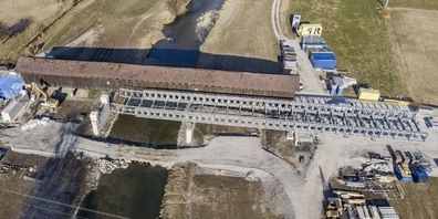 Die Errichtung der neuen Rheinbrücke zwischen Hard und Fussach liegt im Plan. Ab Juni gibt es rund um den Neubau Umleitungen und Sperren.