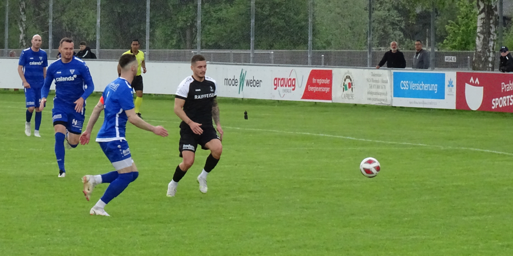 St.Margethens Cheftrainer stellte sich beim wegweisenden Spiel gegen den FC Ems von Anfang an in der Innenverteidigung auf. Beide Mannschaften starteten vorsichtig in die Partie. Die Wichtigkeit der Partie war beiden Teams in der Startphase anzumerken. In der 7. Minute gingen die Emser aus heiterem Himmel in Führung. Nach einem Abpraller haute Agon Topalli aus rund 25 Metern einfach mal drauf. Sein Geschoss senkte sich unhaltbar über St.Margrethen-Keeper Teo Dastan zum 0:1 ins Netz.