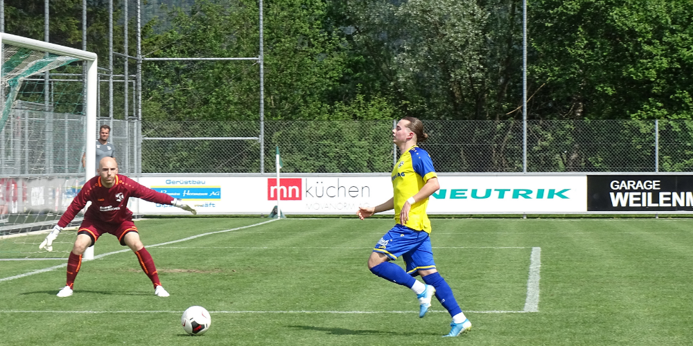 Rund fünf Minuten später kam die erste Chance für den FC Au-Berneck. Lakna spielte den Ball von links ins Zentrum zu Bojaxhi, welcher den Ball aber aus rund fünf Metern nicht nicht im Tor unterbringen konnte.