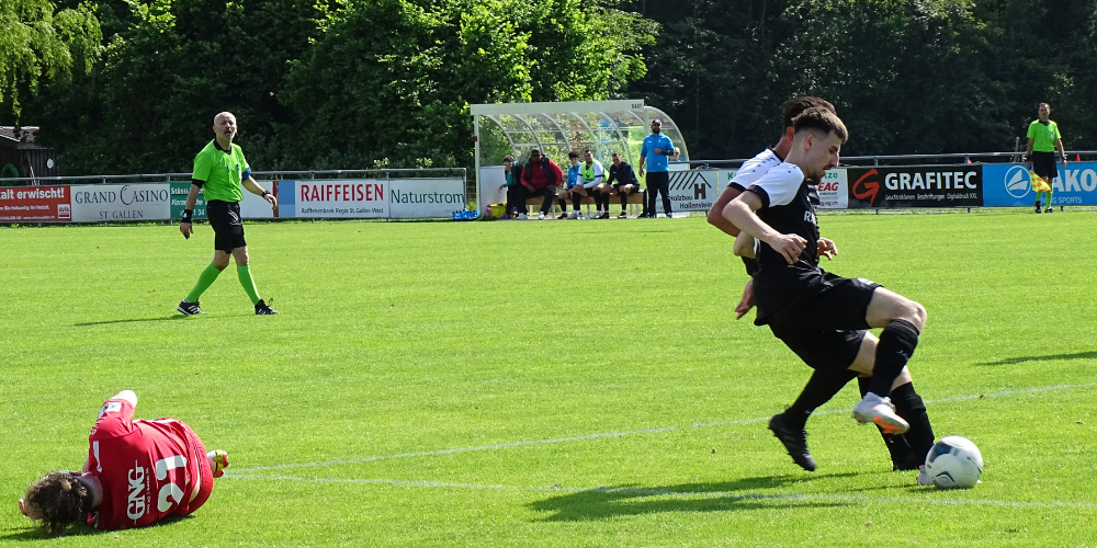 Das Heimteam nahm das Spieldiktat sofort in die Hand. Bereits in der 4. Minute konnte Abtwil-Engelburg-Topskorer Nef alleine auf Jeremic losziehen, setzte den Abschluss aber knapp neben das Tor. Nur zwei Minuten später vergab Temesgen für das Heimteam die nächste Grosschance. Alleine im Fünfmeterraum lenke er eine Flanke von links aber über das Tor. Im Gegenzug dann die erste Chance für die Shoshi-Elf. Ein Schuss von Maliqi konnte Altermatt im Tor von Abtwil-Engelburg aber entschärfen.