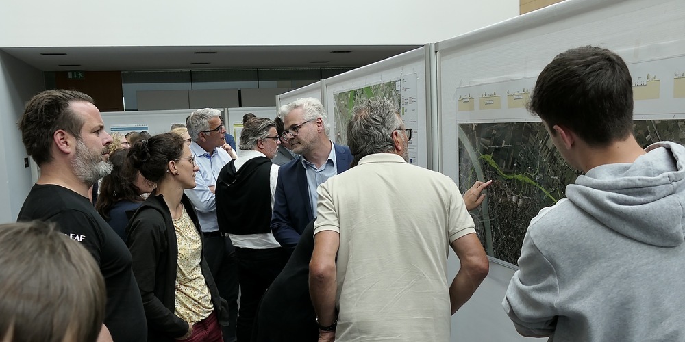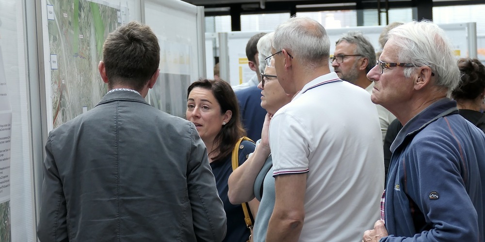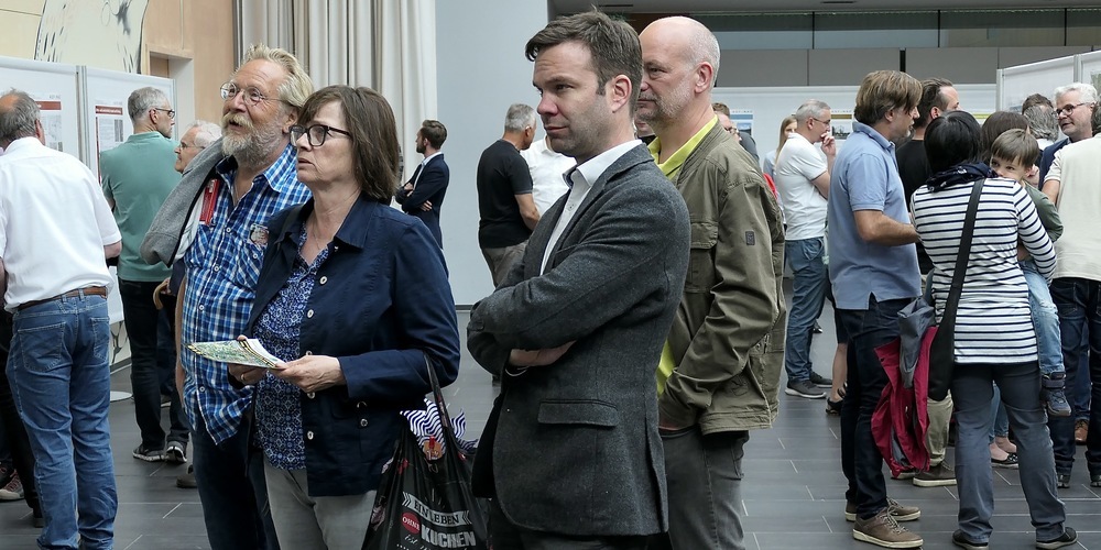Das Interesse für die Ausstellung war enorm. Von nachmittags um drei Uhr bis neun Uhr abends drängten sich die interessierten und betroffenen Menschen im Ausstellungsraum. In angeregte Gespräche verwickelt sah man unter anderem Verkehrslandesrat Marco Tittler und die Bürgermeister von Lustenau, Höchst und Lauterach, Kurt Fischer, Herbert Sparr und Elmar Rhomberg. Auch Tittler fand Gefallen am Veranstaltungsformat. «Diese Ausstellung sehe ich als wesentlichen Eckpfeiler einer offenen Kommunikation zum allgemeinen Planungsstand.»