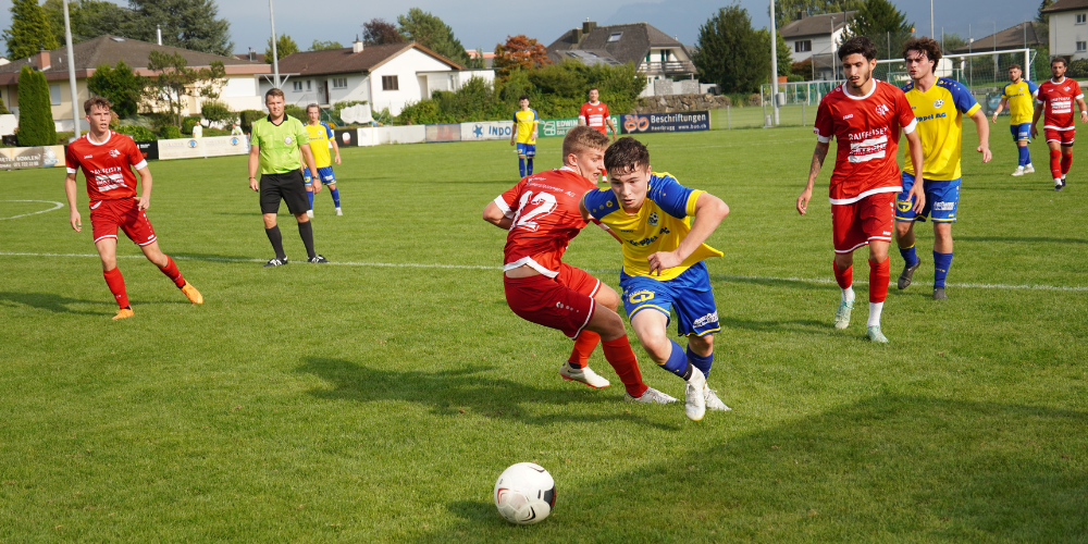 Die erste Viertelstunde gehörte klar den Gästen aus Montlingen, die vor allem punkto Physis in dieser Phase des Spiels Vorteile hatten. Dies änderte sich dann aber im Verlauf der ersten Halbzeit. In der 19. Minute meldete auch die Hafner-Elf erste offensive Ambitionen an. Spahiu wurde auf der linken Seite lanciert. Dessen Hereingabe lenkte Bojaxhiu in die lange Torecke zur zum damaligen Zeitpunkt glücklichen Führung für Au-Berneck ab.