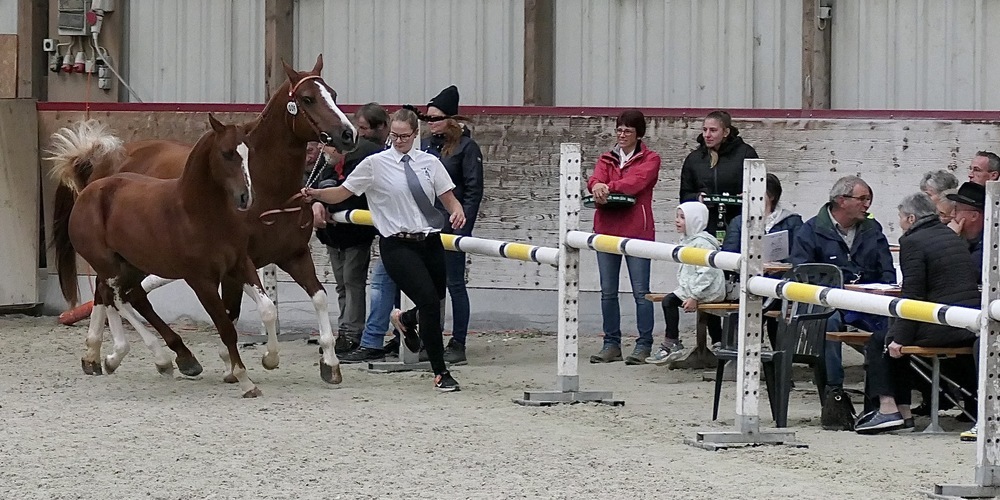 Zur Sichtung und Bewertung durch die Juroren wird die Mutter an einem Strick durch das Geviert geführt. Die Fohlen verbleiben jeweils an der Seite ihrer Mutter. Wobei es wie bei den Menschen besonders brave und besonders freche Tiere gibt. Fohlen, die schon einmal auszubüxen versuchen.
