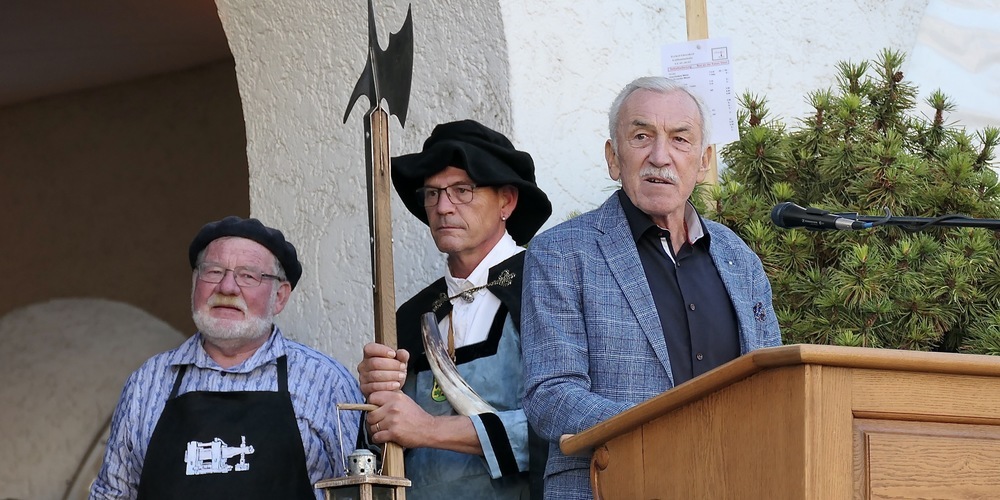 Als alle Fahrzeuge auf dem Rathausplatz angelangt waren, spielten die Musiker des Tambourenvereins Kriessern und Alphornbläser einen musikalischen Gruss. Der Präsident von VINUM Berneck Fritz Kuster entbot in seiner Begrüssungsansprache allen Akteuren seinen Dank, dass sie es möglich gemacht haben, dass Winzer aus allen Weingemeinden des Rheintals heute hier seien.