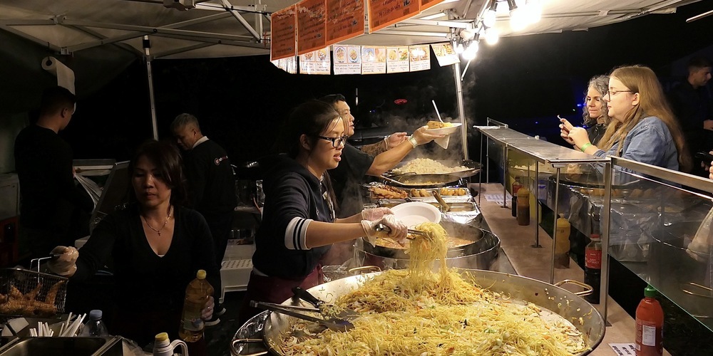 Wer es lieber gemütlicher nehmen wollte, für den waren die vielen Street-Food-Stände die richtigen Plätze. Um genussvoll tibetanische Teigtaschen zu verschlingen. Oder sich von afrikanischem Essen aus Eritrea einen scharfen Zungenbrand zu holen. Oder beim Chinesen Glasnudeln mit Chicken Chop Suey aufzuwickeln. Lukullisch gab es kaum Grenzen auf diesem Moschtifäascht.