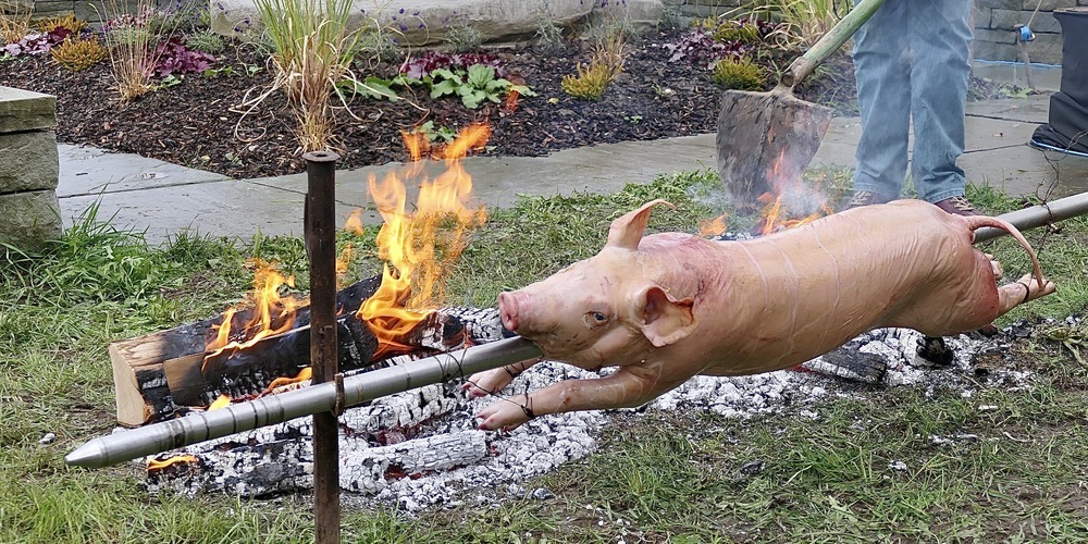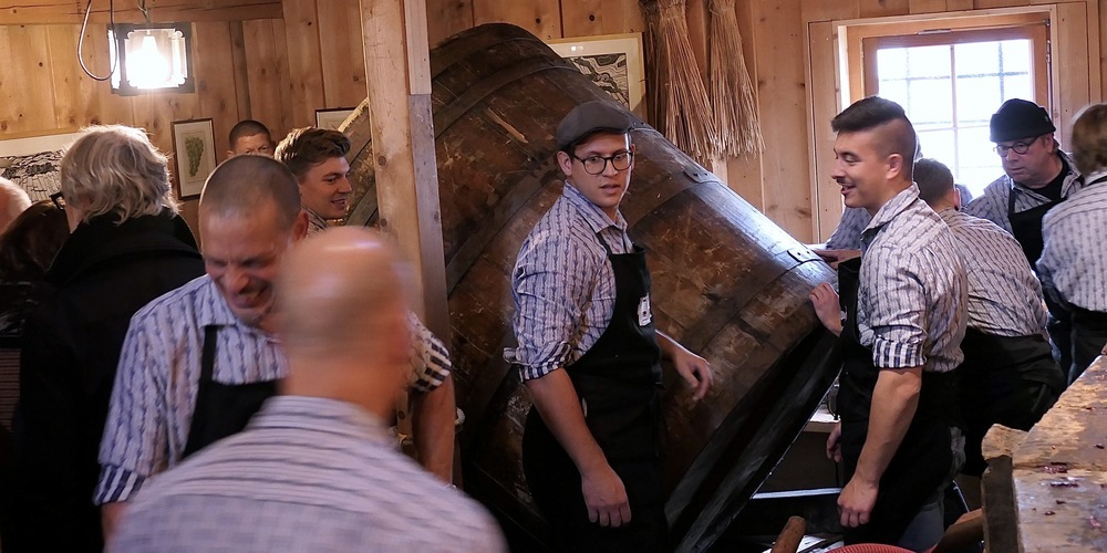 Ja sogar ein Spanferkel drehte sich langsam an einem langen Spiess über Holzkohlefeuer. Das Druckfest war ein Fest für Gross und Klein. Die Pfadfinder buken Schlangenbrot und bauten Rebholztürme. Und der Bernecker Küfer Martin Thurnheer zeigte vor Ort, wie er mit Feuer und Wasser die einzelnen Teile eines Holzfasses so biegsam macht, dass sie in die Fassringe passen.