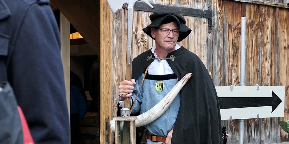 Vor dem Torkel zu Berneck war ein richtiges Festgelände eingerichtet worden. In einem Festzelt waren die Besucher vor dem Unbill des Wetters geschützt. Und konnten sich holen, was Magen, Herz und Seele erfreute. Die Festwirtschaft bot nämlich allerlei spezielle Gerichte. Von der Gerstensuppe über den Fackelspiess bis zum Raclettebrot.