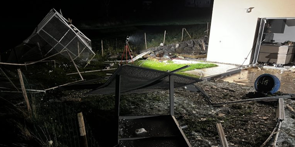 Heute Dienstag kam es kurz nach Mitternacht in einem Einfamilienhaus in Hohenweiler zu einer heftigen Explosion, durch die das Haus schwer beschädigt wurde. Die Explosion wurde vermutlich durch im Heizraum ausgetretenes gasförmiges Kältemittel der Erdwärmeheizung ausgelöst.