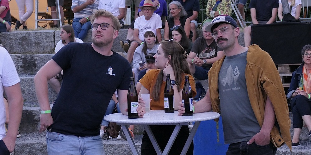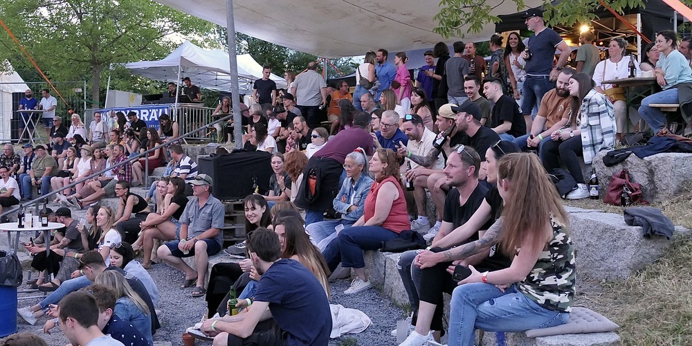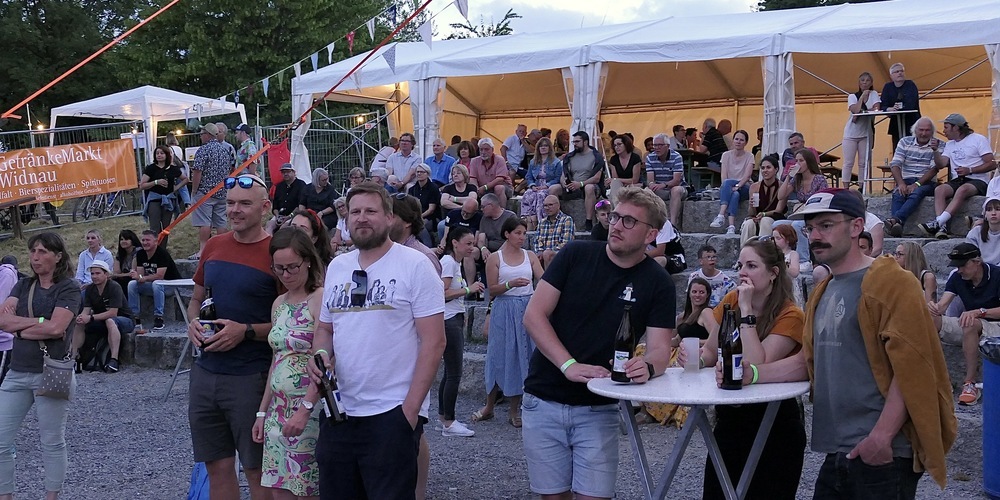 Perfekte Konzertatmosphäre, eine perfekte Location, Super-Organisation und tolle Bands. Und auch Petrus hatte bei diesem Open-Air ein Einsehen. Und machte mit. Offensichtlich ein Rock-Fan hatte er sein bestes Wetter mit blauem Himmel und Sonnenschein satt geschickt. Ein wunderbarer lauer Frühsommerabend erwartete die Konzertbesucher. Was aber der guten Stimmung der rund 350 erschienenen Freunde des gepflegten Folks, Blues-Rock, und Classic-Rocks natürlich förderlich war.