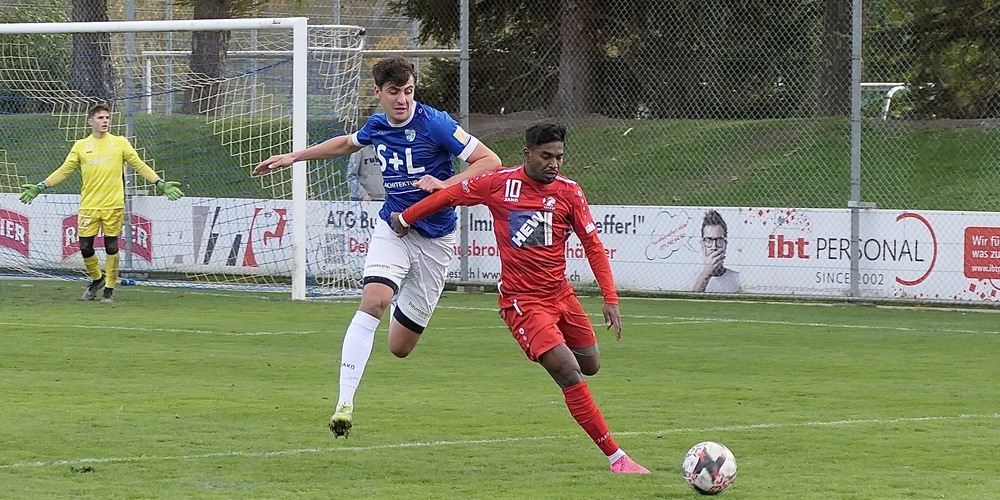 Der Match der Blau-Weissen gegen den Chur 97 hatte noch gar nicht richtig begonnen, da stand es auch schon 1:0 für die Hausherren. Schon in der dritten Minute konnte Noah Thönig die Führung erzielen. Im Stile eines echten Goalgetters verwertete er per Kopf eine Massflanke von Kevin Egbon.
