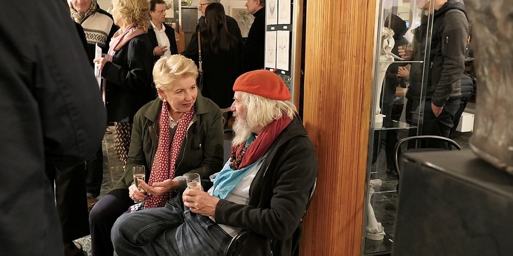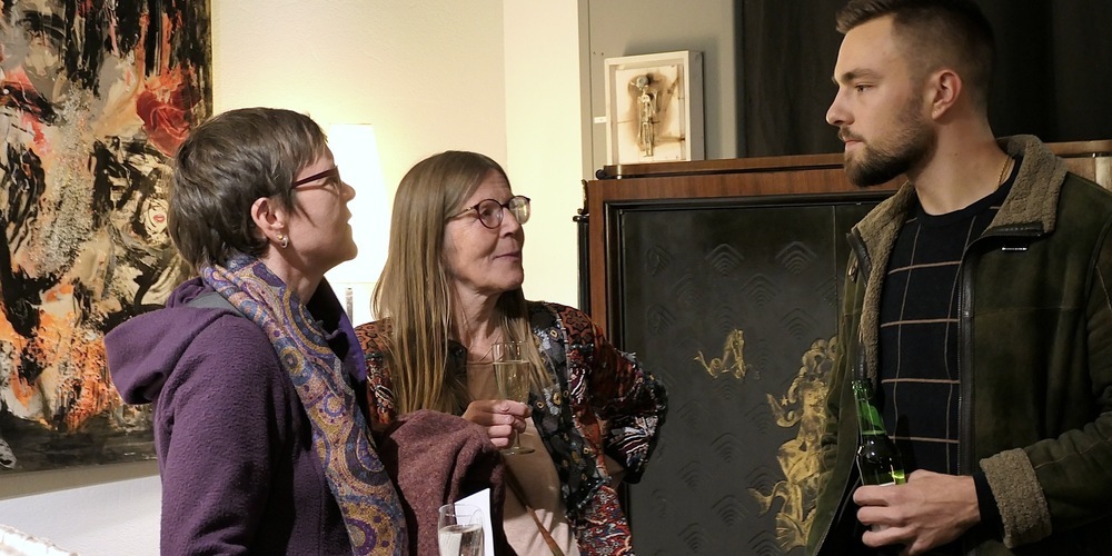 Wer unter den Vernissagegästen zu sehen war? Natürlich eine Rheinecker Abordnung mit Stadträtin Katharina Lins an der Spitze. Dazu Stadtrat Markus Kehl und Stephan Fässler von der Arnold-Niederer-Stiftung. Auch der Rheinecker Ortskünstler Spigar und Stadtführerin Gerda Huber machten ihre Aufwartung.