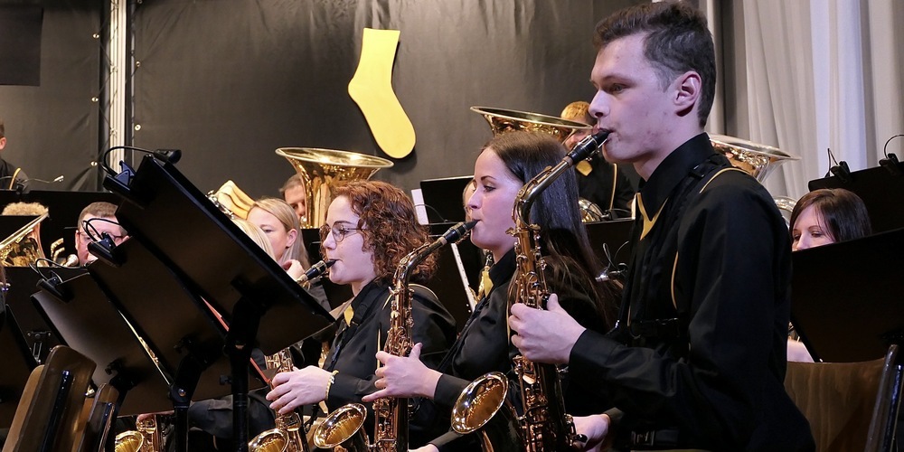 Dem Motto gemäss waren die kleinen Musiker der «Beginners» gekleidet. Wie gelbe Schlümpfe, Verzeihung, wie gelbe Socken sassen sie mit ihren Instrumenten auf der Bühne und spielten sich unter der Taktführung von Jessica Gächter erstaunlich reif für ihr Alter durch ihr Programm, in dem unter anderem musikalisch ein Drachen gezähmt und die Chroniken von Narnia erzählt wurden.