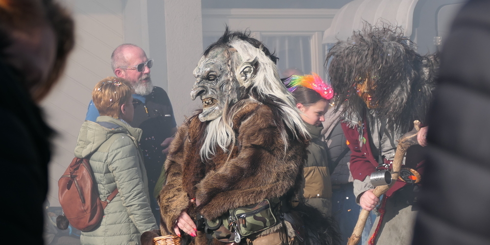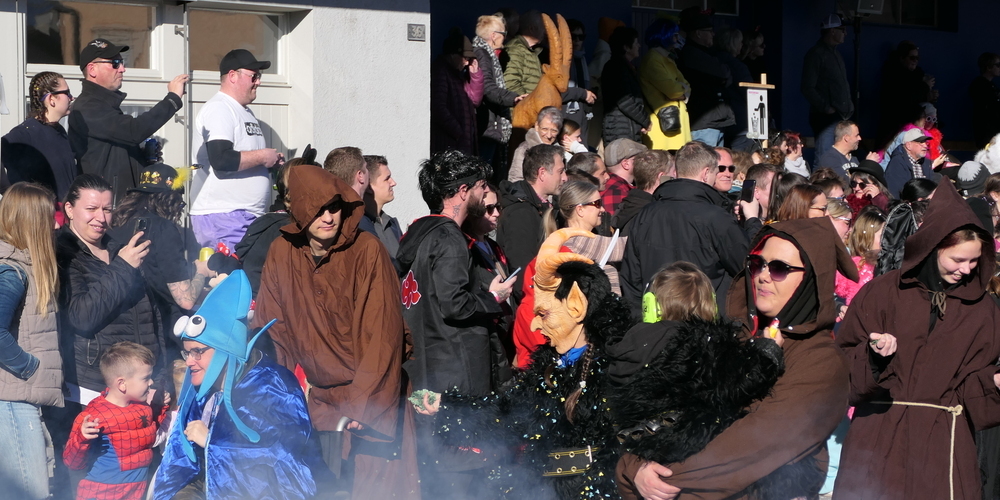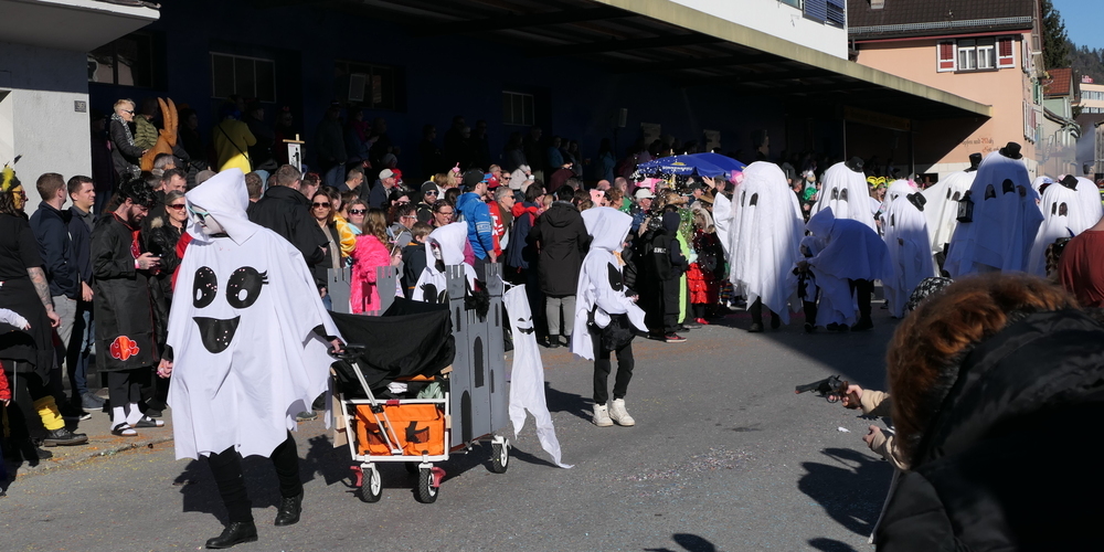 Die Teilnehmer am Umzugstross hatten sich grosse Mühe gegeben. Geradezu liebevolle, teils äusserst originelle Maskierungen ergaben ein närrisches Bild. Wie etwa gleich die Gruppe der Gespenster zu Beginn des Umzugs. Gespenster, vor denen sich wohl niemand gefürchtet hat. Eher gute Geister, denn finstere Dämonen.