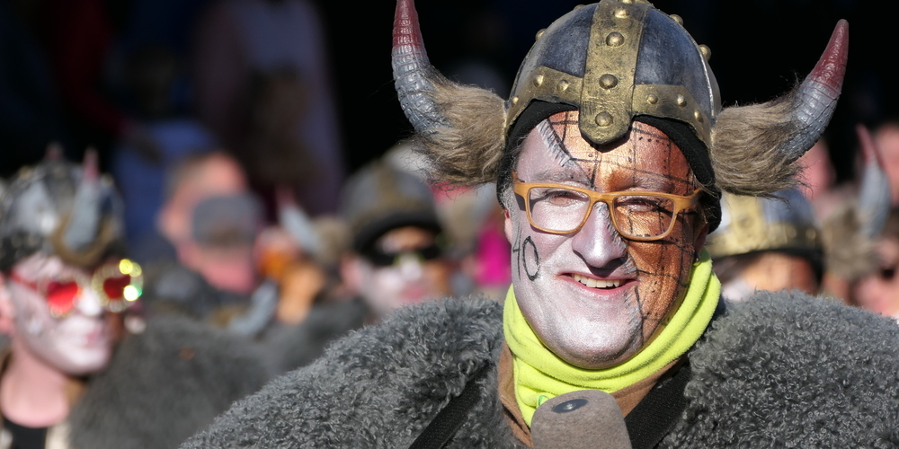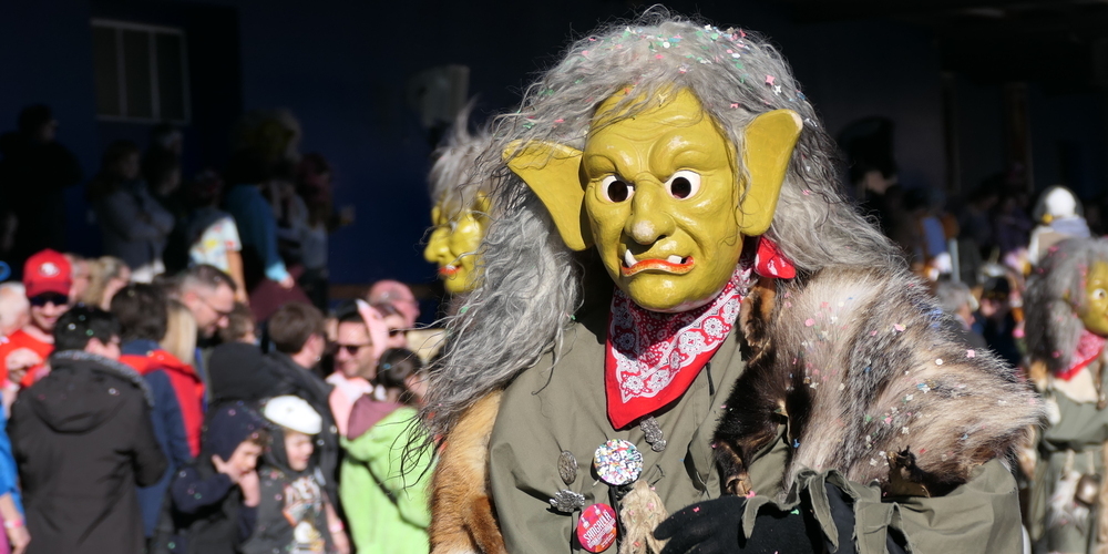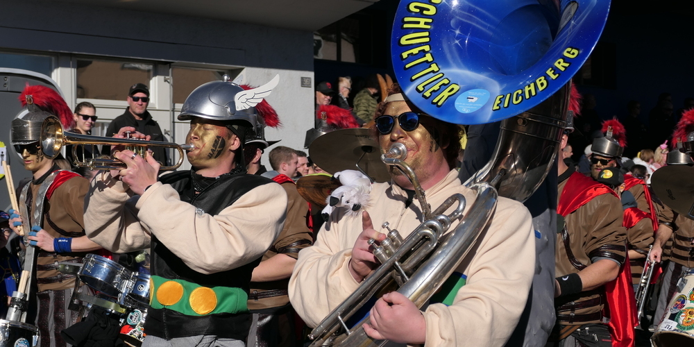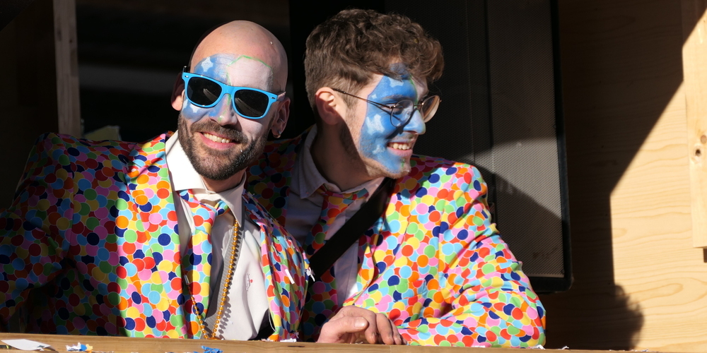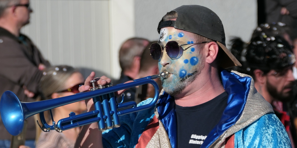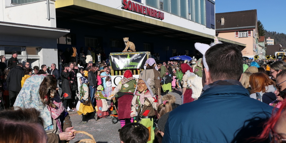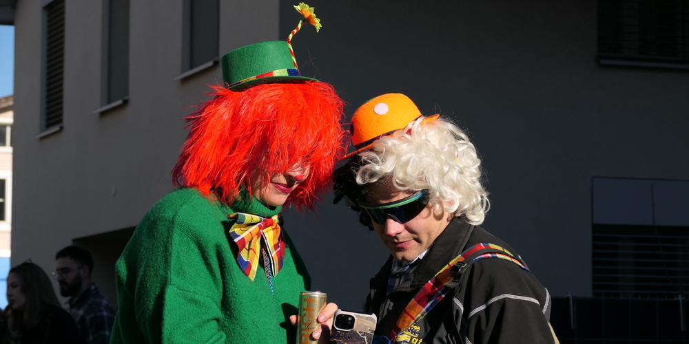 Sie alle schmetterten ihre schrägen Töne gegen den strahlend blauen Himmel. Weitgehend sinnbefreite Musik, die aber automatisch gute Laune macht. Wie auch die aufwändigen Kostümierungen der Pseudomusikanten. Überhaupt war gute Laune wieder einmal Trumpf. Und besonders die vielen Kinder, die kleinen Prinzessinnen, Cowgirls und Cowboys und Spidermans, hatten ihre helle Freude. Machten mit beim munteren Konfettischmeissen. Und versuchten, so viele Bonbons und Lutscher wie möglich zu ergattern.