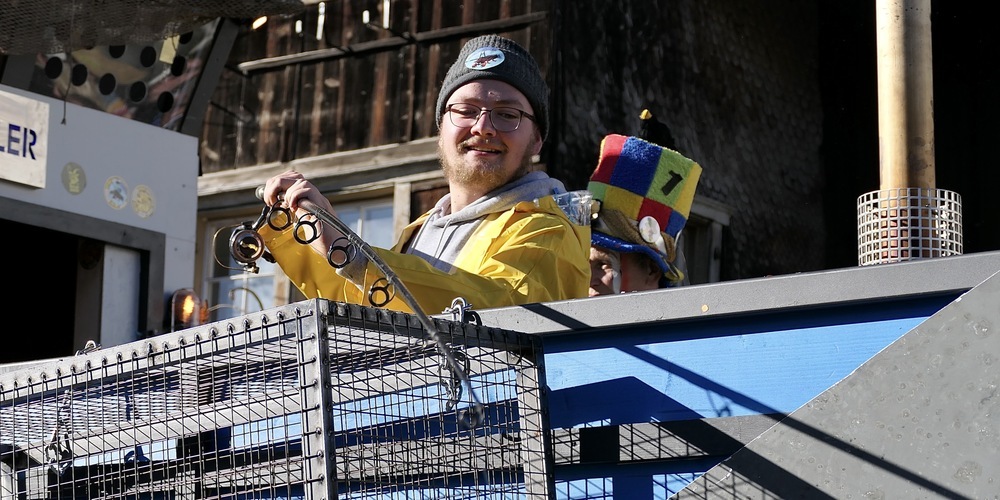 In ihrer ersten Fasnachtumzugssaison befinden sich die Wearlagrübler aus Diepoldsau mit ihrem Umzugswagen, der einem Schiff nachempfunden ist. Unter dem Motto «Fang das Leben» wurden aber eher Mädchen eingefangen und in das - das hatten wir doch schon? - mit Punscherle gefüllte Beiboot eingetaucht.