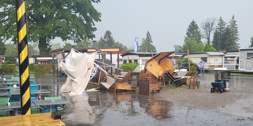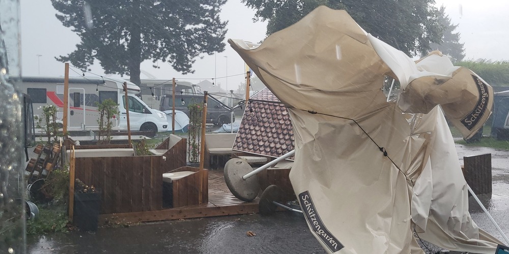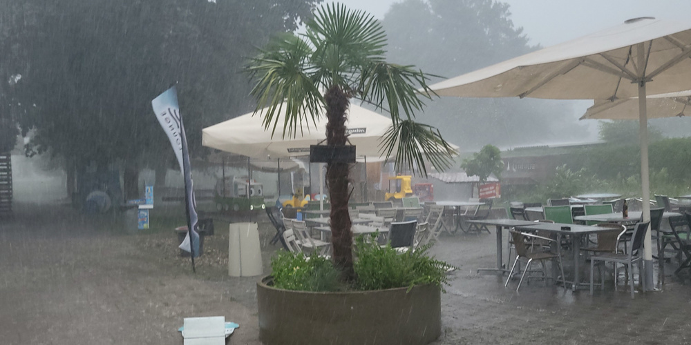 Gestern Abend trafen zwei Gewitterzellen, eine aus dem Appenzellerland und eine aus den Vorarlberger Alpen, in St.Margrethen völlig unerwartet aufeinander. Durch diese Kollision entstanden massive Schäden, vorrangig über dem beliebten Schwimmbad und Camping Bruggerhorn in St.Margrethen.