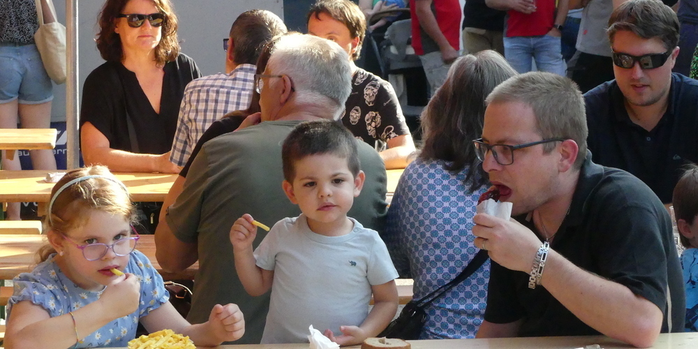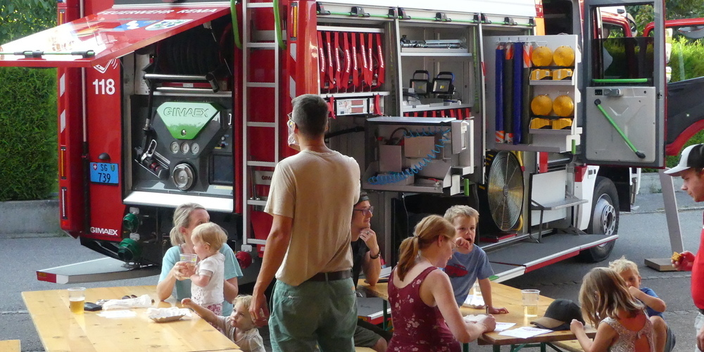 Viele Rebsteiner und Marbacher sind an diesem herrlichen Freitagabend gekommen, um die Heimstatt ihrer Feuerwehr zu besichtigen. Und anschliessend gemütlich mit Freunden und Bekannten noch auf einen Schwatz zusammenzusitzen, und dabei das Gratis-Soft-Ice von Magenbrot Rohner und ein kühles heimisches Sonnenbräu zu geniessen.