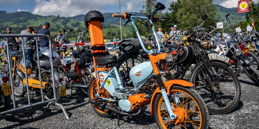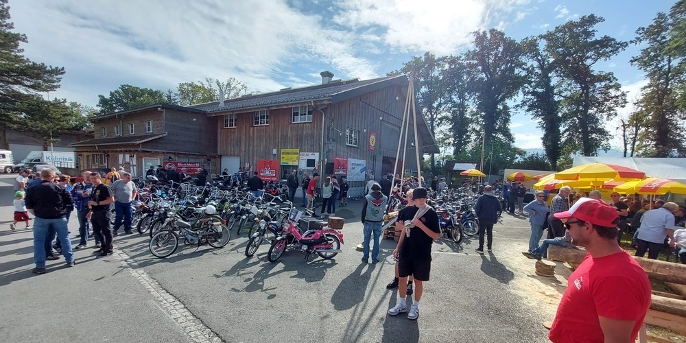Natürlich darf eine gemeinsame Ausfahrt nicht fehlen: Um 13:30 Uhr startet die Töffli-Tour, die etwa 45 Minuten dauert. Im Anschluss gibt es einen Dämmerschoppen, bei dem erneut «Quetschnblech» für Stimmung sorgt.