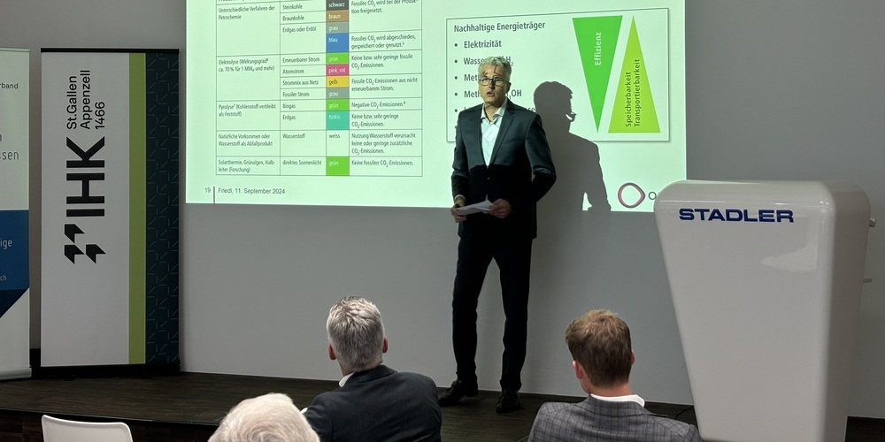 «Mehr als zwei Drittel des nationalen Energieverbrauchs sind fossil», eröffnet Markus Bänziger, Direktor der IHK St.Gallen-Appenzell, den Abend. «Es ist unser Anspruch, dass wir jetzt von den fossilen Ressourcen wegkommen. Denn diese sind endlich und laufen irgendwann aus.» Früher sei es noch normal gewesen, Benzin in der Apotheke zu kaufen – heute haben sich die Ansprüche geändert. «Interessant ist, dass die Wirtschaft nur einen Drittel des Energieverbrauchs verzeichnet.»
