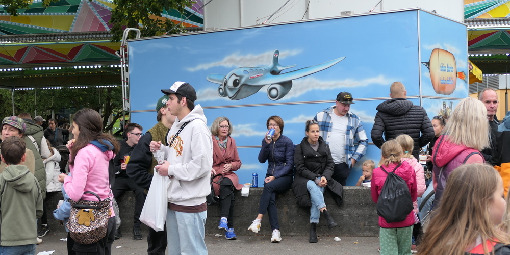 Wow! War das ein Kilbitag. Prächtiges Kilbiwetter. Bewölkt, aber trocken und nicht zu kalt. Da strömten die Leute in Scharen herbei, um ihren Sonntagnachmittag mit kleinen Pläuschchen mit alten Bekannten, mit Zuckerwatte, Bratwürsten und einem Getränk im spärlichen Sonnenschein zu verbringen .