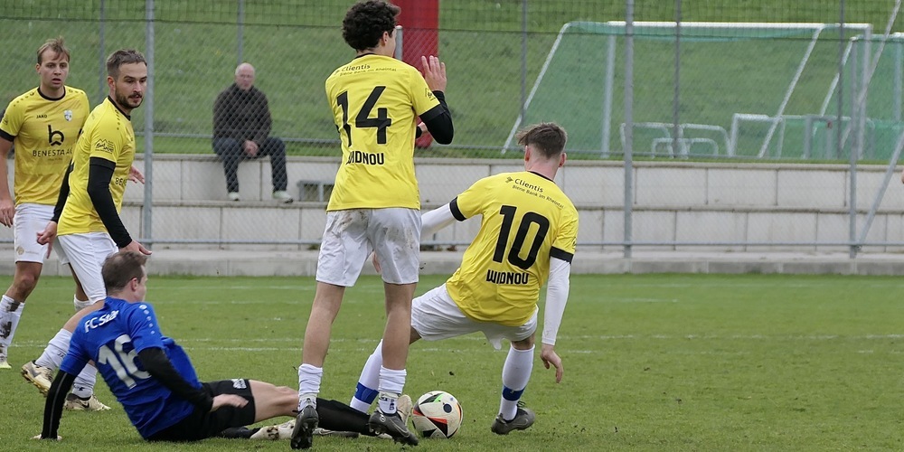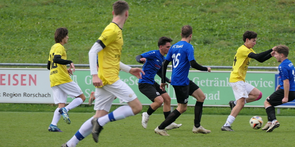 Rund um die 30. Minute erfolgte dann der Doppelschlag durch die Gäste. Zunächst war es Timon Cabezas, der aus dem Mittelkreis mit dem Ball am Fuss auf und davon stürmte, sich noch gegen einen Verteidiger und gegen den Torhüter der Staader durchsetzte und das Spielgerät ins leere Tor schob. Nur vier Minuten später dieselbe Situation. Wieder war es Cabezas, der nach vorne stürmte, dessen Abschluss Goalie Buschauer aber abwehren konnte. Ungewollt aber in Richtung des nachziehenden Finn Metzler, der eiskalt einnetzte. Und damit die Seinen mit 0:2 in Führung brachte.