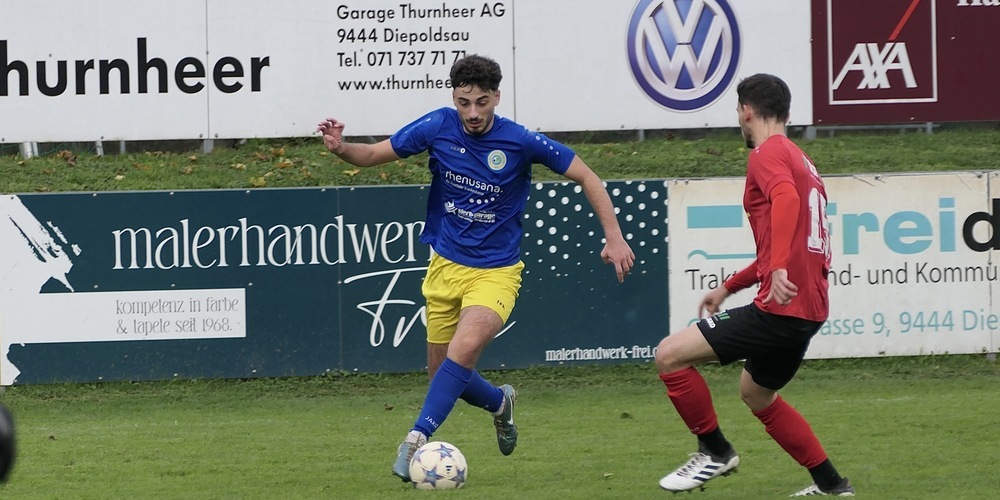 Das Gastspiel des FC Gams beim Tabellenführer FC Diepoldsau begann mit einem Knall. Nein, keine Pyrotechnik, die explodierte. Sondern ein bereits vor Ablauf der ersten Minute durch die Gamser erzieltes Tor. Ihre Offensivkraft Giger war auf der linken Aussenbahn unwiderstehlich nach vorne gestürmt und schlug den Weg in Richtung des blau-gelben Strafraums ein. Jungtalent Lukas Sigrist, der für den abwesenden Peter Petrov im Tor stand, rutschte auf dem glitschigen Boden kurz aus und hatte keine Chance auf eine Abwehr.