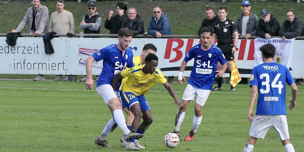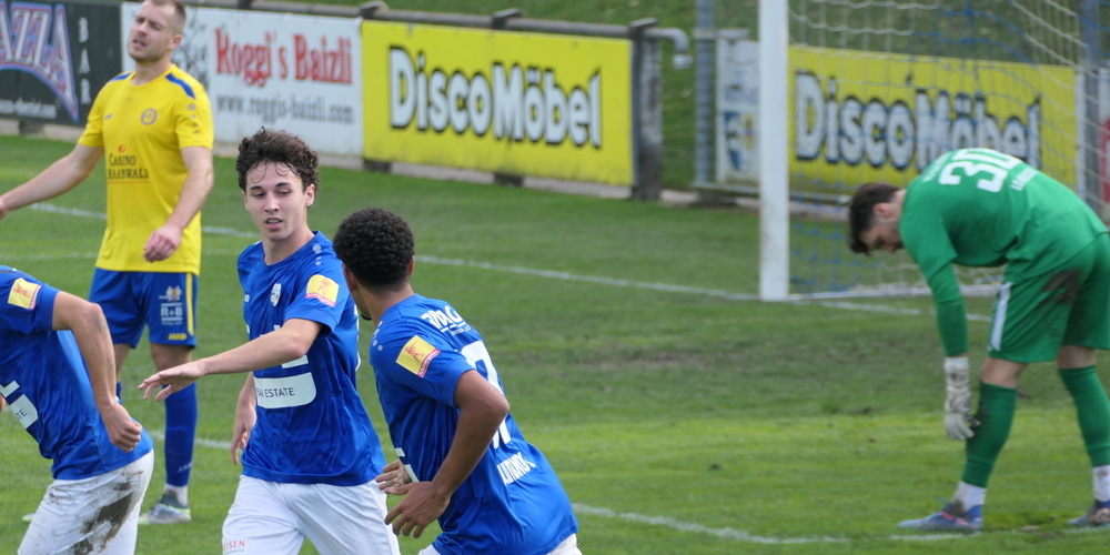 Und unverzüglich nach diesem Treffer setzte Andreas Lüchinger die nächste ungewöhnliche Massnahme. Er ersetzte Ivan Ivic und Arbnor Dalipi bereits in der 34. Minute durch Luca Giorlando und Emir Murati. Auf einen Schlag spielten die Blau-Weissen hinten viel konsequenter und mit mehr Elan auf der Aussenbahn. Was sich fünf Minuten vor der Pause auch in Zählbarem äusserte. Ein Freistossball von Lässer wurde von Noah Thönig per Kopf zu Kevin Egbon verlängert, der mühelos zum 2:2 Ausgleich verwandeln konnte.