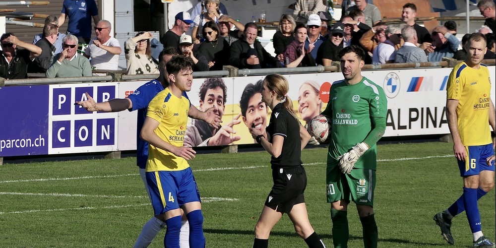 Noch ein Wort zur eingesetzten Schiedsrichterin Nadine Reichmuth: Chapeau! Die Unparteiische fällte über neunzig Minuten hindurch kaum einmal eine unrichtige Entscheidung, obwohl sie von der Balzers-Bank und von den Gelb-blauen Spielern ständig mit unberechtigter Kritik konfrontiert wurde. In allen kritischen Situation behielt die junge Frau Referee stets den Überblick und scheute sich nicht, neben berechtigten gelben Karten auch eine rote Karte zu erteilen. Auch diese Situation, eine Tätlichkeit des sichtlich erregten Aljaz Kavcic an Orhan Ademi, hat sie kühl und korrekt beurteilt.
