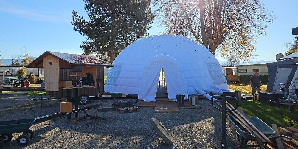 Passend zum kühlen Wetter und dem ersten Schneefall öffnet der diesjährige Winterzauber in der Badi Bruggerhorn in St.Margrethen seine Tore. Innert einer Woche wurde der Campingplatz zum heimeligen Winterdörfli umgebaut. Feuerschalen, Marroni- & Glühweinstand, eine originale Alphütte und neu ein Panorama-Iglu laden zu gemütlichen und kuscheligen Momente im Bruggerhorn ein.