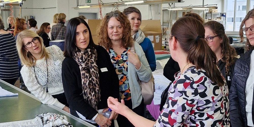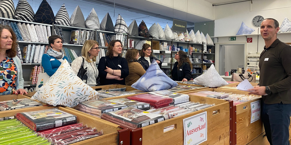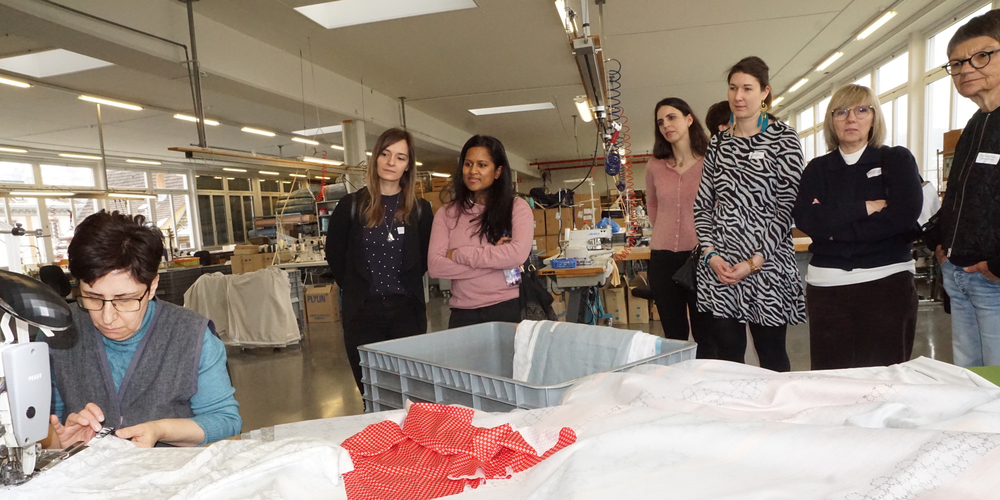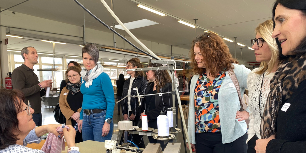 Die Unternehmerinnen Rheintal durften die Produktion in der «Traumfabrik», wie sie Cheryl und Rico Bossi sowie Produktionsleiterin Bea Freund gerne nennen, hautnah erleben und die verschiedenen Stoffmaterialien greifen und fühlen.