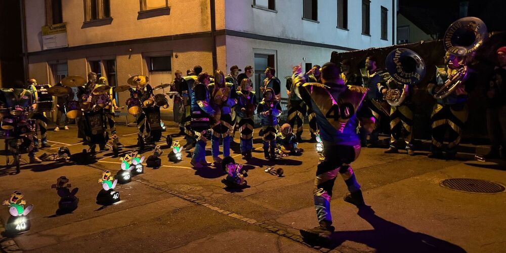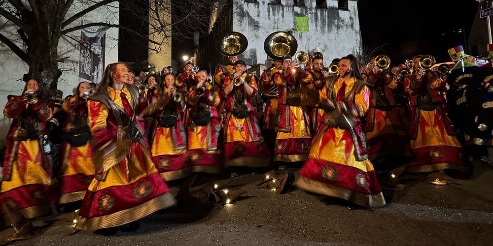 Um 19:30 Uhr ging es weiter mit der Guggenmusik der Burgtätscher, die für weitere Begeisterung sorgten. Ab diesem Moment gab schwang ganz Rebstein das Tanzbein.