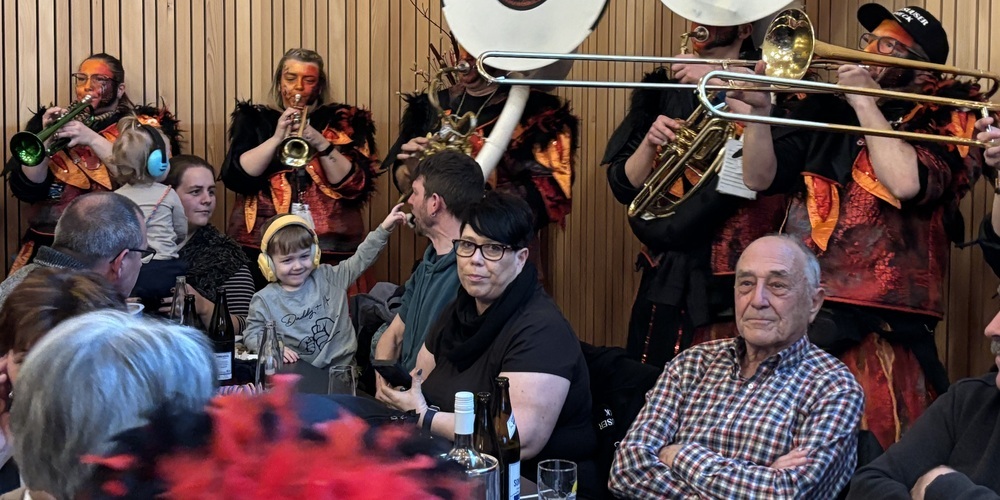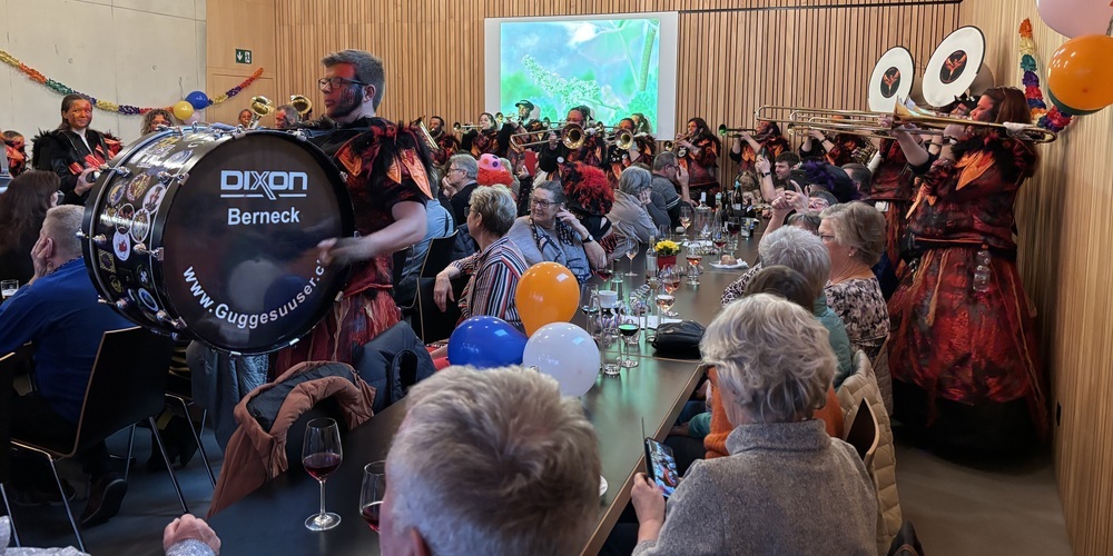 Und mit dem Auftritt der lokalen Gugge «Guggesuuser Berneck» wurde diesem ohnehin schon feierlichen Anlass die Krone aufgesetzt. Etwa 30 Guggenmusiker brachten den Saal mit ihrer Musik zum Beben, die Vibration war spürbar.
